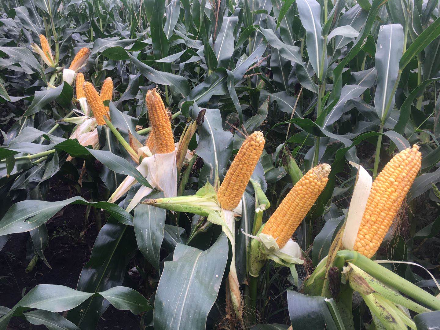【特征特性】在適應區出苗至成熟生育日數為107d左右,需≥10℃活動積溫2020℃左右。株高230cm左右,穗位高80cm左右,成株可見12片葉。果穗筒型,穗軸白色,穗長18.5cm左右,穗粗4.8cm左右,穗行1216行,籽粒偏馬齒形、黃色,百粒重36g左右。兩年品質分析結果:容重762791g/L。